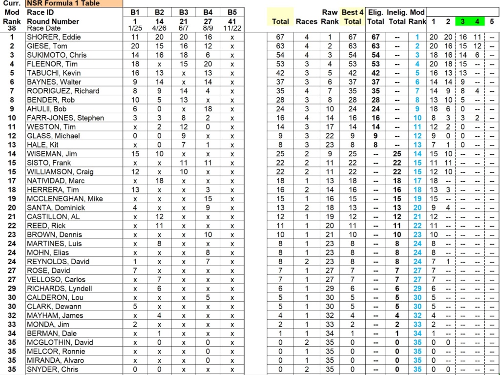 NSR Formula 1 (updated as of 10/25/2025)