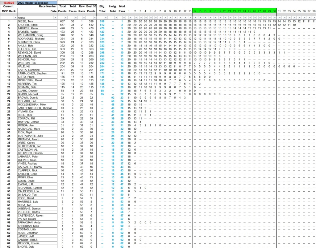 2025 Overall Farrout Series Standings: (as of 10/25/2025)
