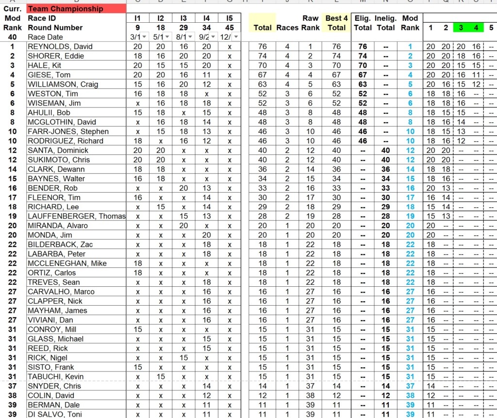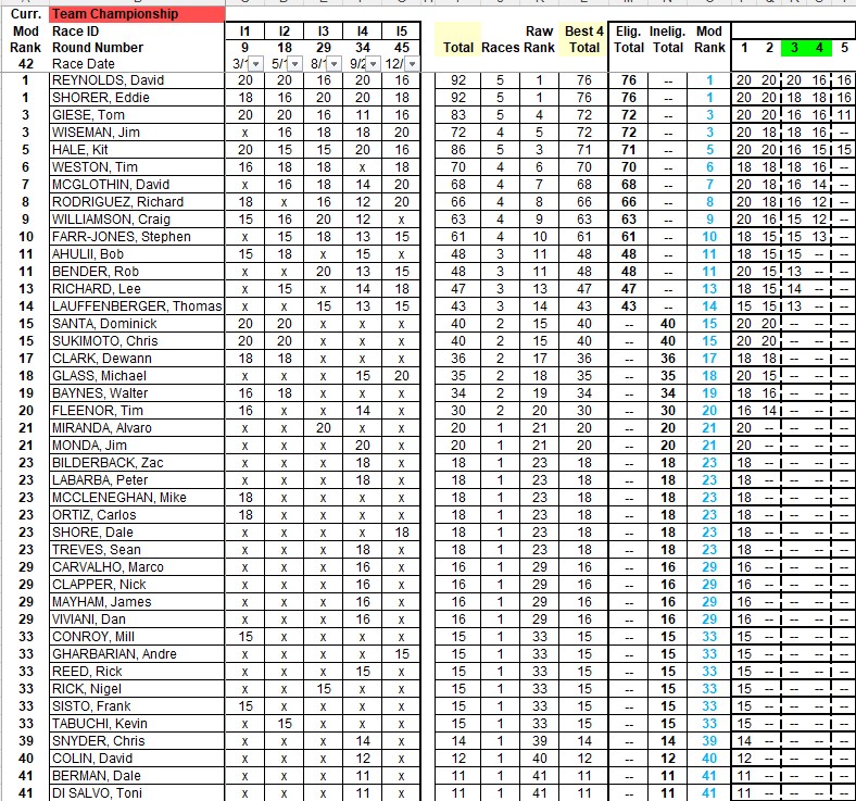 For those of you new to the club: each class has 5 races. You have to race in 3 of 5 to qualify for the championship and, if you race in all 5, you can drop your worst result. Details below.