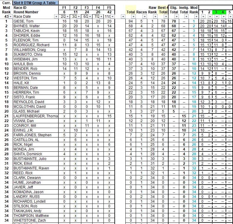 Tom has won the class ahead of Craig, with Eddie and Kevin in a tie for 3rd. 5th thru 7th are taken by David R, Rob, Rich, with Kit and Stephen tying for 8th and Frank rounding up the Top 10.