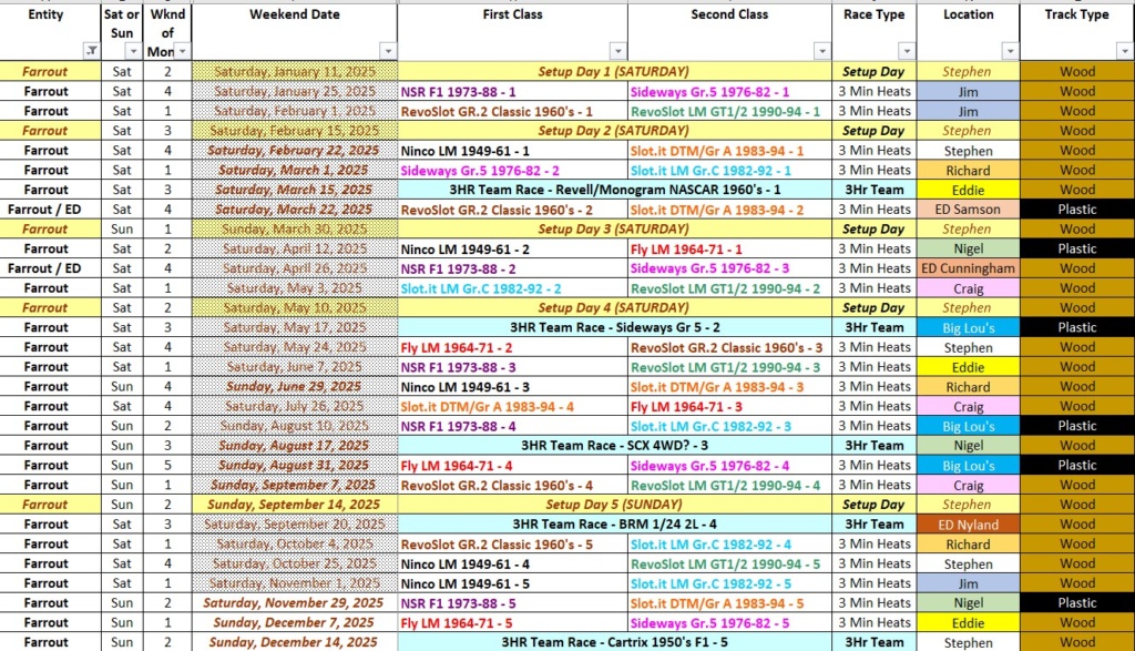 I have coordinated the 2025 SoCal slot car racing calendar between Electric Dreams, Farrout and RSRS so there are no weekend race conflicts.