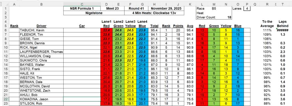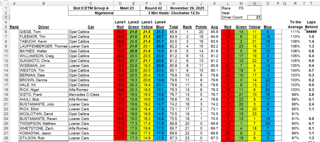 Race Results from November 29, 2025 – NSR Formula 1 and Slot.It DTM Gp A at Nigelstone Raceway