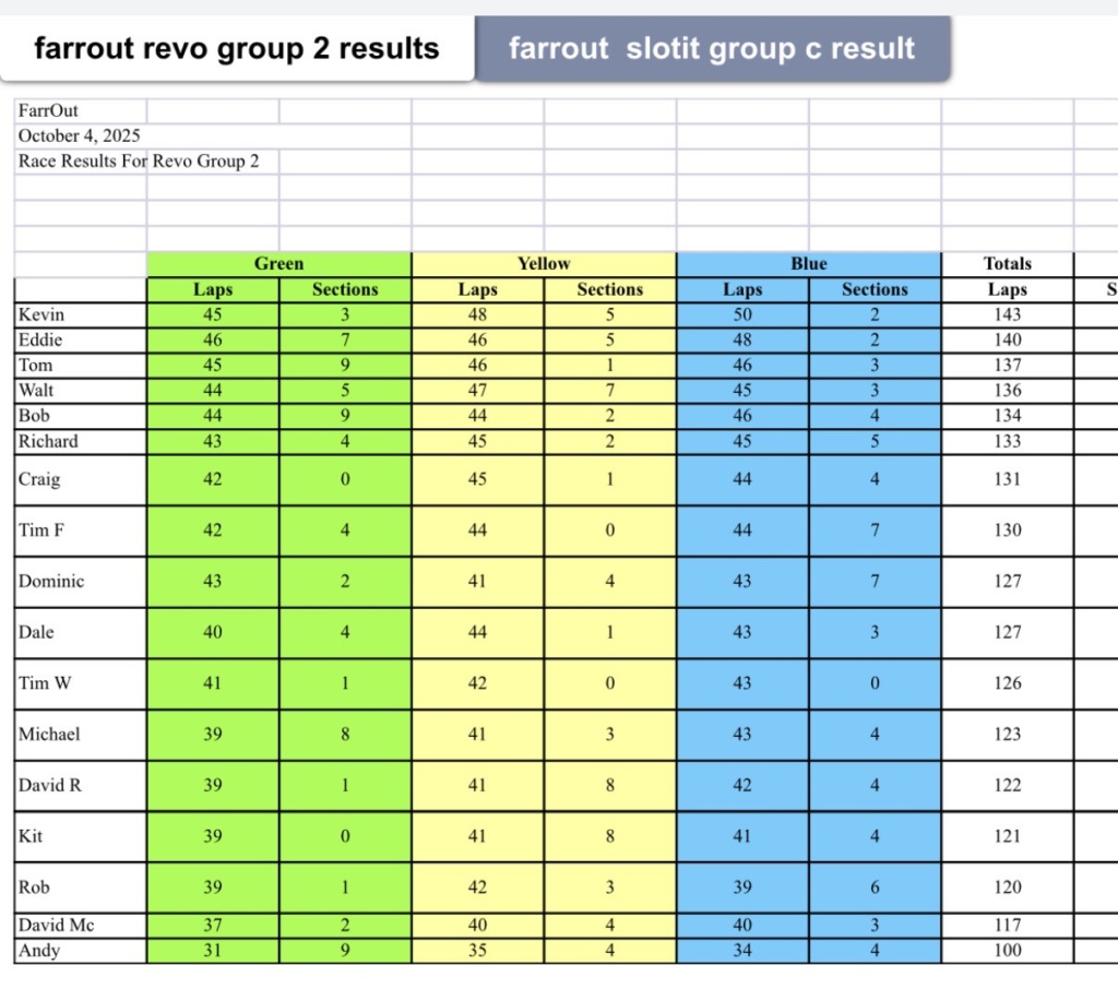 Race Results from Oct 04, 2025 – RevoSlot Gr 2 and Slot.It Gr C at Circuito de los Santos de Silverlake (Richard’s)