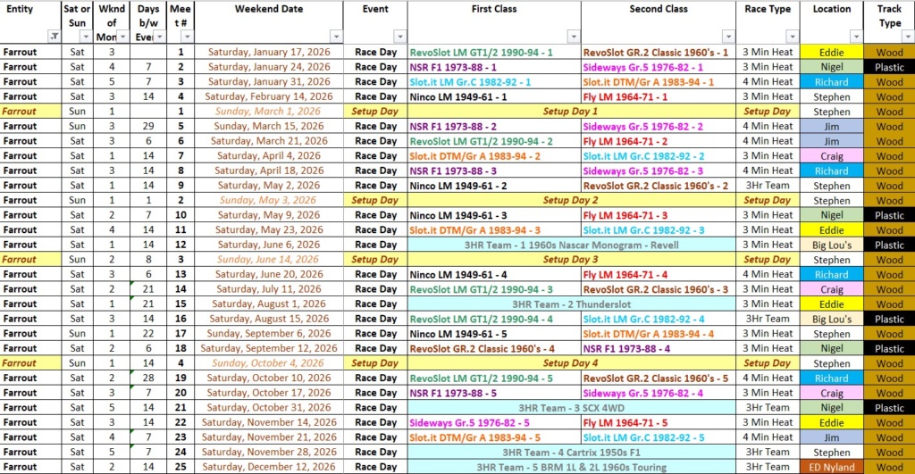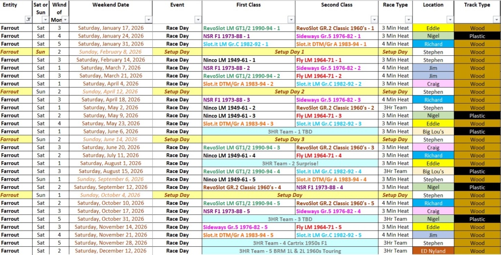 There are almost no overlaps with other SoCal slot car racing events during 2026, either between Farrout and others or between the others.
